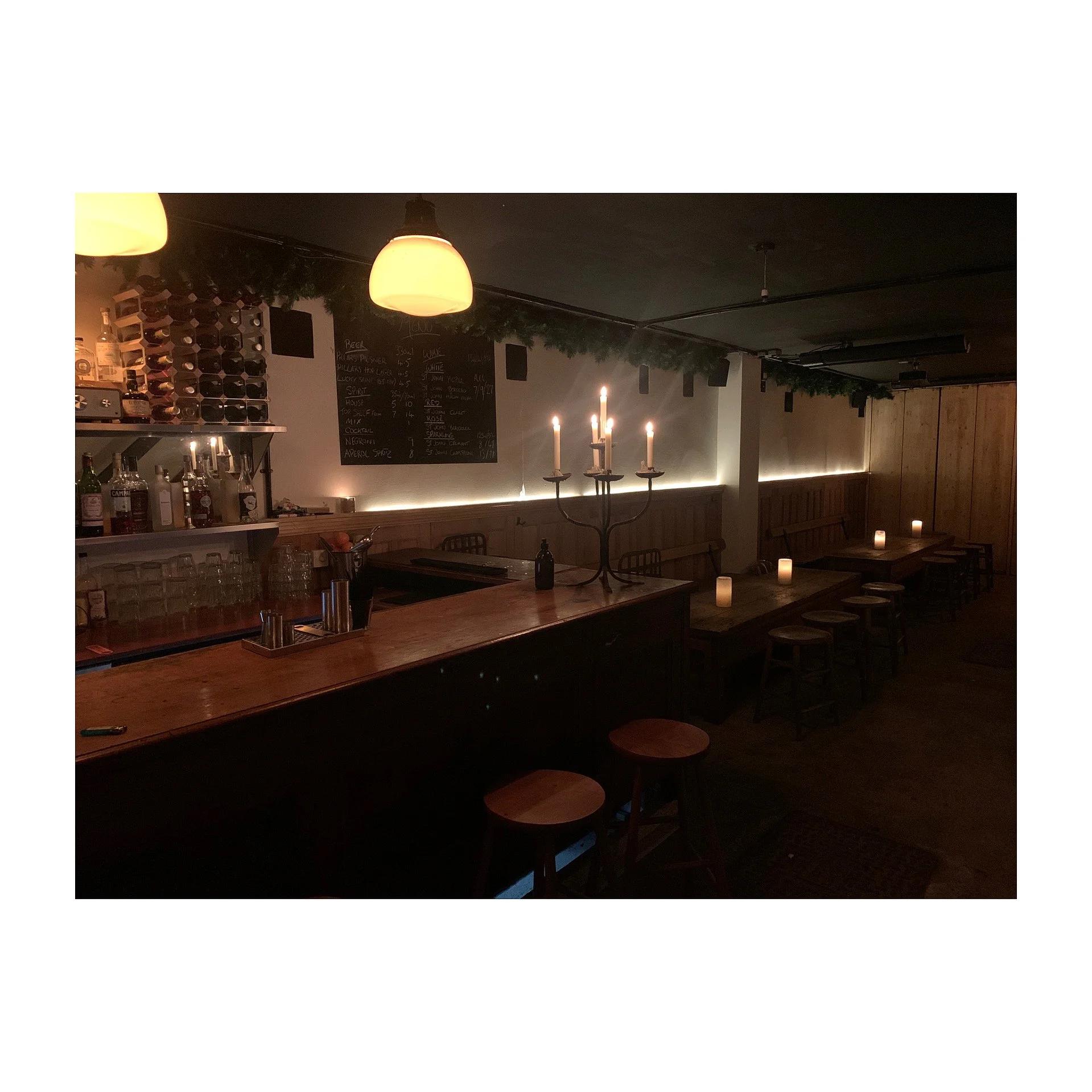 A seated capacity of 30 people with a mixture of communal long bench seating, private tables and bar seating. A low light and candle lit and intimate setting for a range of events, we recommend pre booking to reserve your space for a Thursday nigh drinking club night, walk-ins are welcomed too if space is available